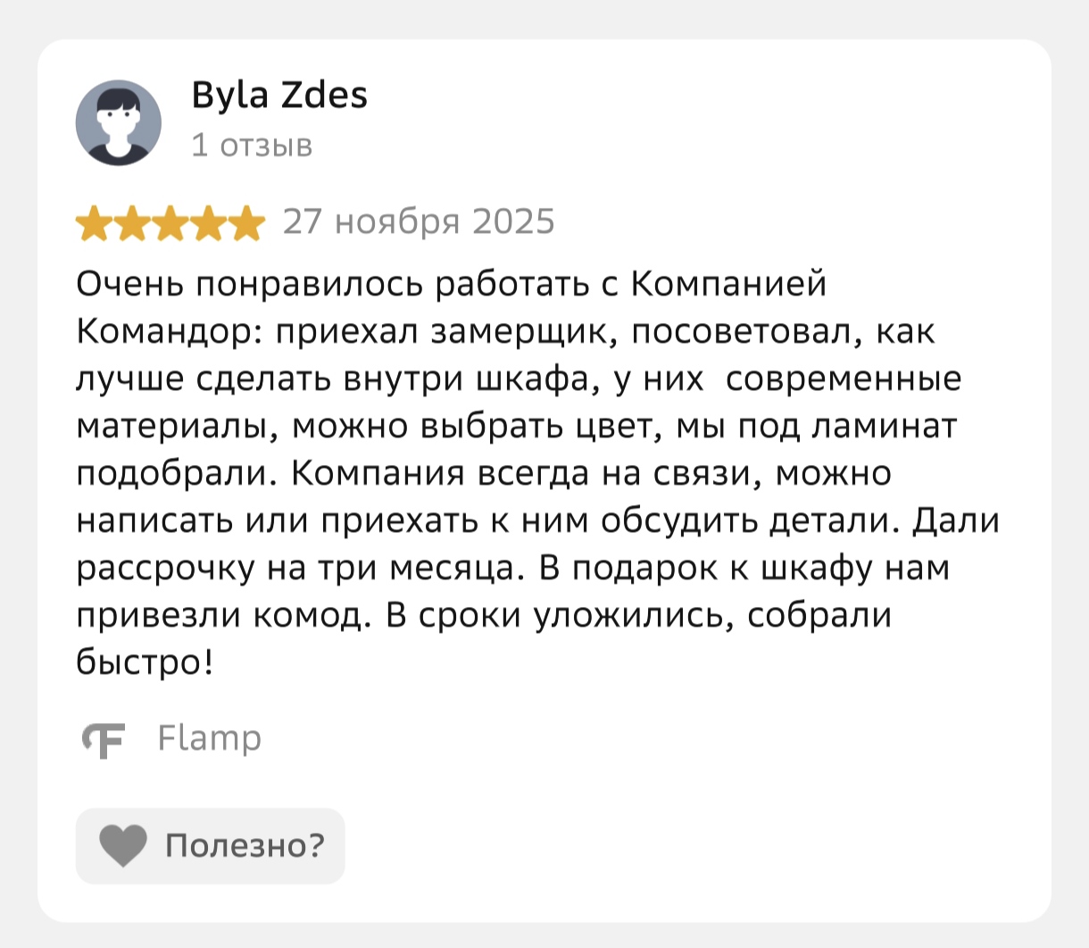 Отзывы заказчиков о фабрике KOMANDOR