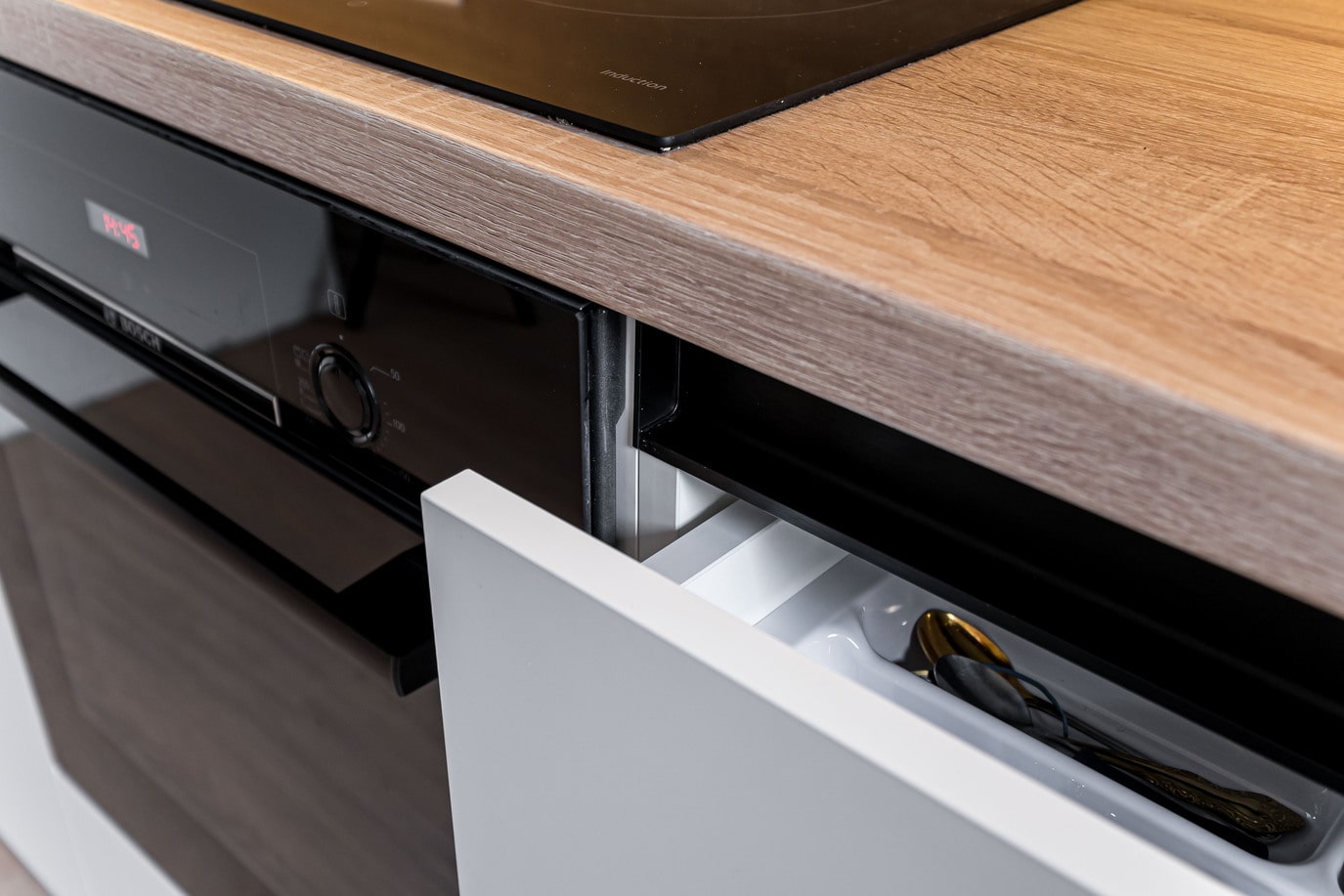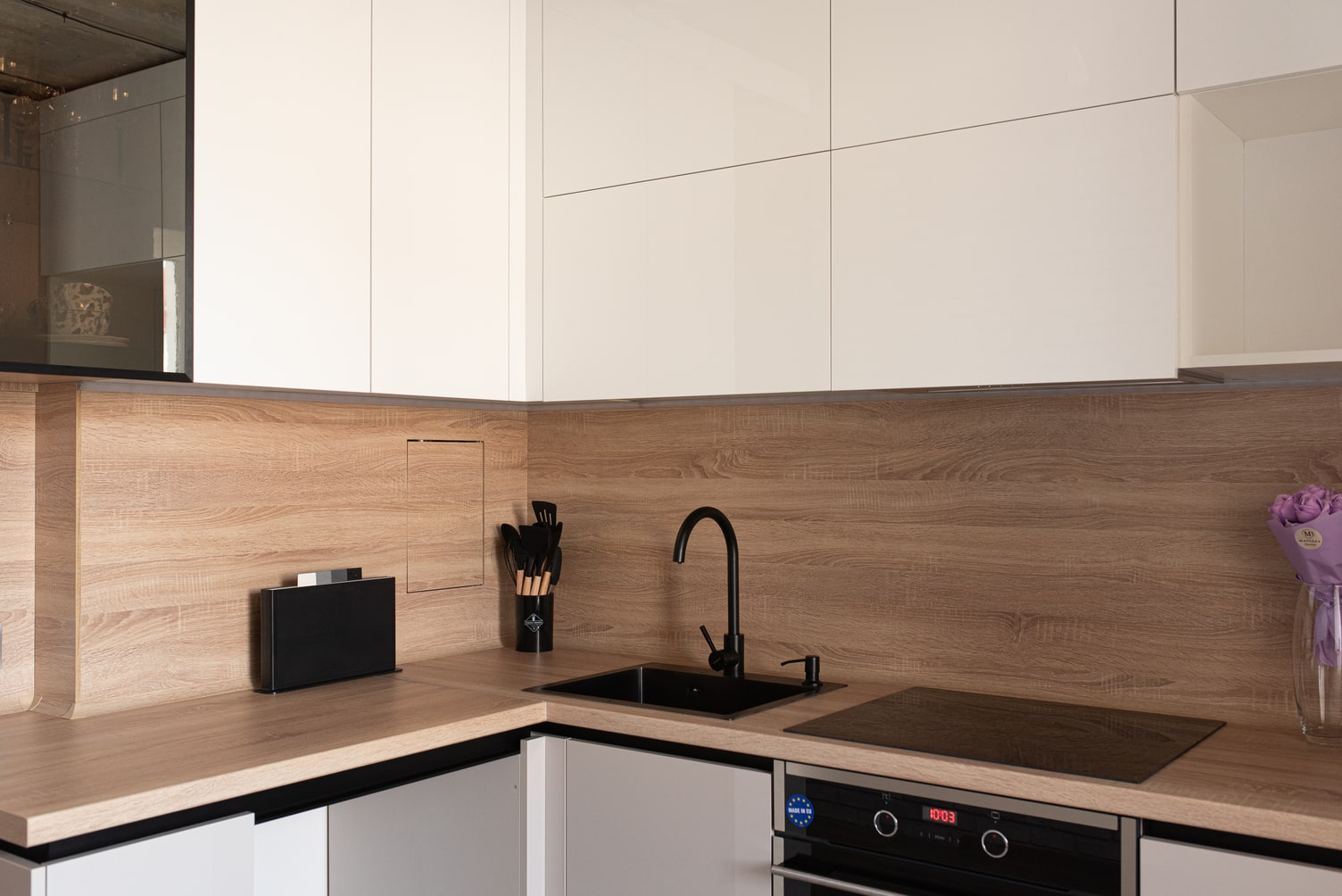 Используем столешницы, которые имеют высокую износоустойчивость. Не царапаются ножом и не оставляют следов от горячей посуды